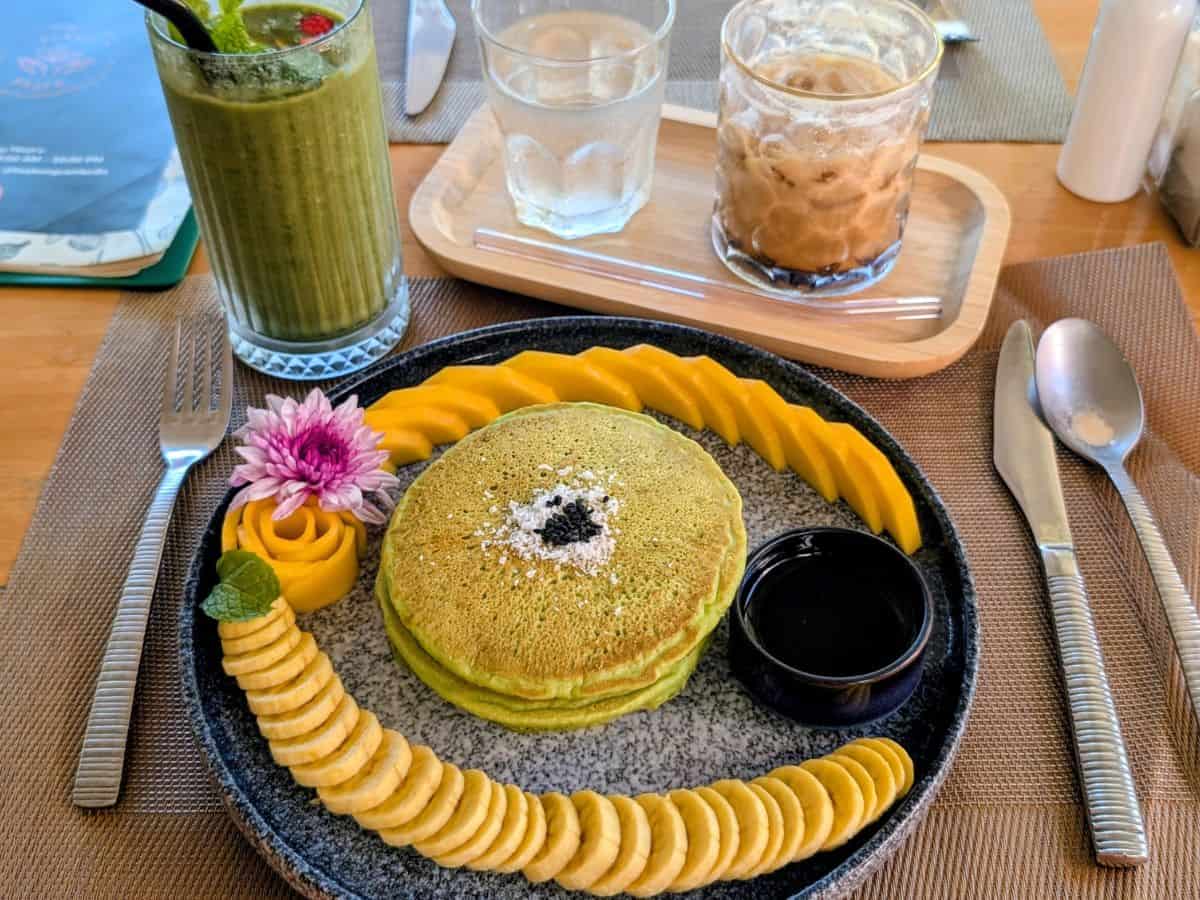 This plant-powered cafe boasts a vibrant menu of all-day brunch dishes, wholesome bowls, and Cambodian-inspired mains, all crafted with fresh, locally sourced ingredients. Expect crowd-pleasers like colorful Buddha bowls, Khmer-style red curry, or my favorite pandan pancakes! I’ll let the picture do all the talking for them.